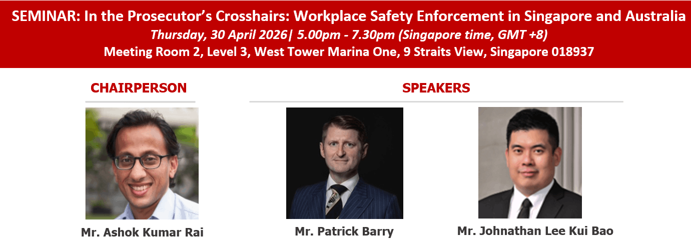 This seminar offers a comparative and practical examination of prosecutions under the Workplace Safety and Health Act 2006 (Singapore) and the Work Health and Safety Act 2011 (Australia). Johnathan will address the Singapore framework, drawing on his experience as a former prosecutor to explain enforcement priorities, prosecutorial discretion and common pitfalls for defendants. Patrick will cover the Australian regime, sharing insights from defending companies and individuals in serious workplace safety prosecutions and provide an outline of what Singapore based entities with operations in Australia must know. Together, the speakers will provide counsel with strategic, practice-focused guidance on managing investigations, responding to charges and advising clients exposed to regulatory and criminal liability.
